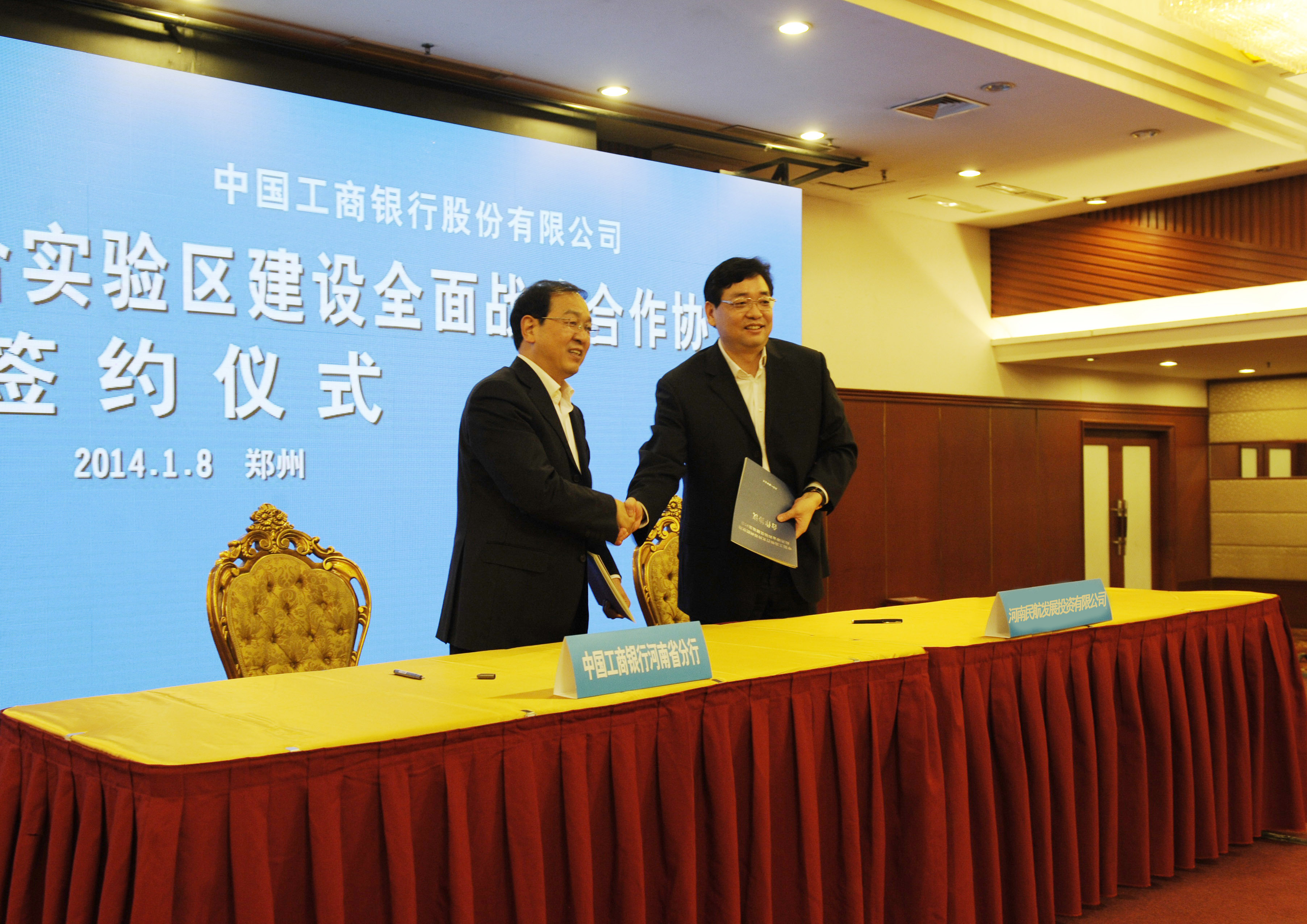 On January 8, 2013, Mr. Xie Fuzhan, the governor of Henan province met Mr. Yi Huiman, the president of ICBC. Representing the government of  Henan and ICBC respectively, they signed the comprehensive strategic cooperation agreement for building Zhengzhou Airport Comprehensive Economic Experimental Zone. Mr. Li Ke, the vice-governor of Henan province was present at the meeting and hosted the ceremony. Since HNCA was one of the main entities in the Zone, Mr. Zhang Mingchao, the Chairman of HNCA, attended the ceremony and signed the bank-enterprise cooperation agreement with ICBC on behalf of HNCA.