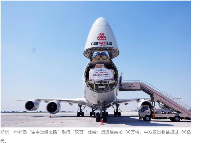 2014年1月,河南航投收購盧森堡貨航35%股權(quán)簽約儀式在鄭州舉行。同年6月,首條鄭州—盧森堡國際貨運(yùn)航線開通,同年11月,盧森堡貨航鄭州航線貨運(yùn)量就突破1萬噸;2015年11月,貨運(yùn)量累計(jì)突破5萬噸,國際貨運(yùn)量、國際貨運(yùn)航線數(shù)、航班數(shù)量、國際通航點(diǎn)等主要指標(biāo)躍居鄭州機(jī)場(chǎng)首位;2016年6月,累計(jì)貨運(yùn)量突破10萬噸;2019年5月,50萬噸;2021年8月,80萬噸,2023年6月突破100萬噸。