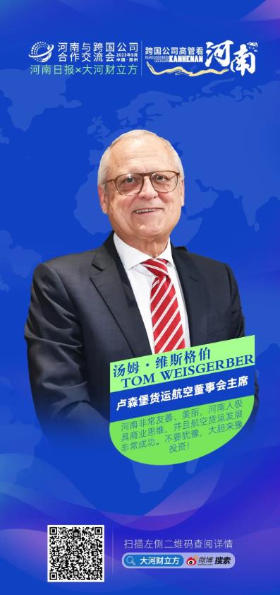 9月5日,盧森堡貨航董事會主席湯姆·維斯格伯前來鄭州參加河南和跨國公司交流合作會,同行的還有盧森堡貨航總裁兼首席執行官理查德·福森,兩位負責人聯袂遠道而來,足見他們對河南的重視。