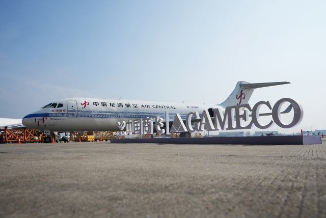 10月30日,中國商飛在廣州向河南航投集團交付ARJ21客改貨飛機。作為啟動用戶,這也是河南航投收到的首架ARJ21客改貨飛機。中國商飛黨委書記、董事長賀東風(fēng)向集團黨委書記、董事長張明超移交交付紀念鑰匙。中國商飛黨委副書記、董事譚萬庚,中原龍浩航空董事長郭建業(yè)等致辭,中國商飛黨委常委、副總經(jīng)理、總會計師吳永良向河南航投租賃頒發(fā)飛機銷售證,民航中南局副局長陳維向中原龍浩航空頒發(fā)單機適航證、國籍登記證、無線電臺證。中國商飛黨委常委、副總經(jīng)理張玉金主持儀式。