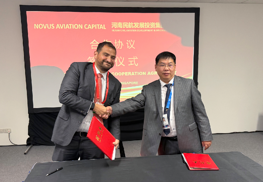 2月21日,河南航投集團子公司河南航投航空設備租賃有限公司(以下簡稱航投租賃)與NOVUS航空資本(NOVUS AVIATION CAPITAL,以下簡稱NOVUS)在新加坡航展期間簽署了合作協議,雙方就成立海外平臺以及開展飛機租賃業務等事宜達成合作意向。