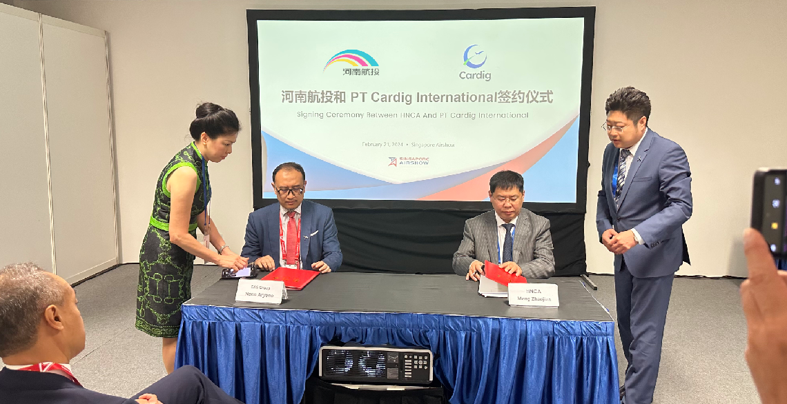 2月21日,河南航投與印度尼西亞卡迪格航空集團(Cardig)在新加坡航展期間簽署諒解備忘錄,在航空培訓、航空運輸及航空基礎設施建設等領域開展全方位戰略合作。隨后,雙方子公司廣東優翼航空技術有限公司(以下簡稱優翼仿真)與雅加達航空培訓中心(以下簡稱JATC)簽訂合作協議。