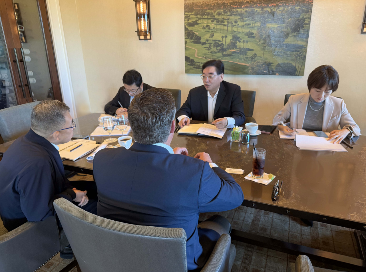 11月22日,代表團(tuán)一行在洛杉磯與Wallace銷售副總裁Bryan會(huì)談,美國(guó)康尼航空相關(guān)業(yè)務(wù)負(fù)責(zé)人一同參加。張明超介紹了中豫航空集團(tuán)簡(jiǎn)況和鄭州機(jī)場(chǎng)當(dāng)前業(yè)務(wù)布局。他表示,在Wallace的促成下,美國(guó)康尼航空今年在鄭貨運(yùn)量增幅超過(guò)50%,與鄭州機(jī)場(chǎng)貨量同步達(dá)到歷史峰值,物流服務(wù)集成商、航空公司、樞紐機(jī)場(chǎng)三方資源疊加,實(shí)現(xiàn)了優(yōu)勢(shì)互補(bǔ)和共贏發(fā)展,希望Wallace和美國(guó)康尼航空進(jìn)一步拓展在鄭業(yè)務(wù),加強(qiáng)與中原龍浩航空等本土貨運(yùn)航空公司的合作,中豫航空集團(tuán)將一如既往給予支持。Bryan表示,今年5月,Wallace與美國(guó)康尼航空開(kāi)通了鄭州機(jī)場(chǎng)首條直飛亞特蘭大/達(dá)拉斯的國(guó)際定期貨運(yùn)航線并順利運(yùn)營(yíng)至今,為各方發(fā)展提供了支持。目前,鄭州機(jī)場(chǎng)已經(jīng)成為美國(guó)康尼航空在中國(guó)大陸投放運(yùn)力最多的機(jī)場(chǎng),Wallace希望能繼續(xù)與中豫航空集團(tuán)保持良好的合作關(guān)系,并將根據(jù)市場(chǎng)需求適時(shí)增加在鄭運(yùn)力。