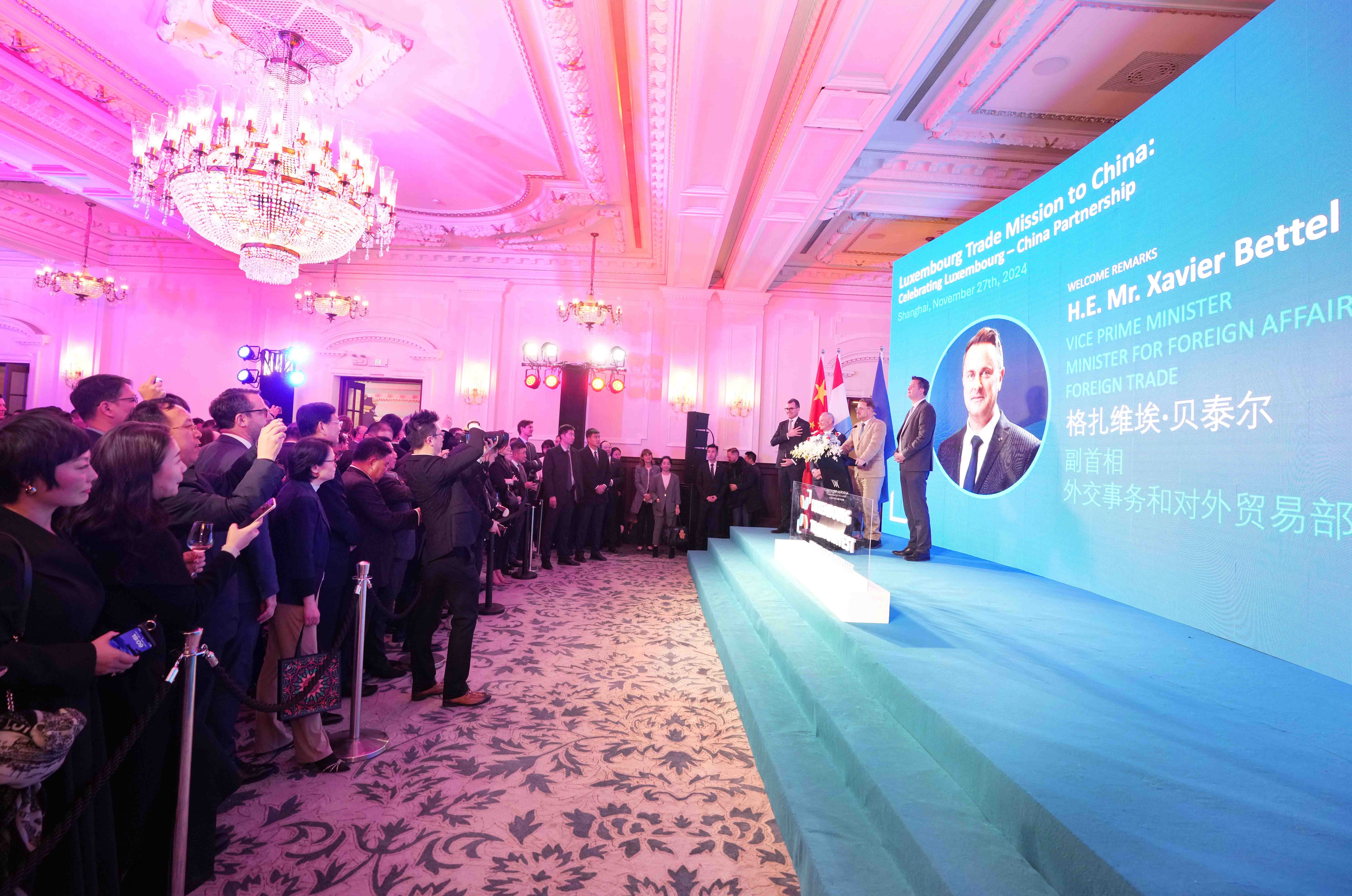 11月27日,盧森堡-中國(上海)商務合作論壇在上海舉行。盧森堡副首相兼外交、外貿大臣格扎維?!へ愄?,盧森堡經濟、中小企業(yè)、能源和旅游大臣萊克斯·德勒斯,駐華大使盧睿朗等出席。中豫航空集團黨委書記、董事長張明超受邀參加,并在盧森堡大公國商貿團訪華官方招待會上與貝泰爾、盧睿朗等就促進鄭盧“空中絲綢之路”建設溝通交流。