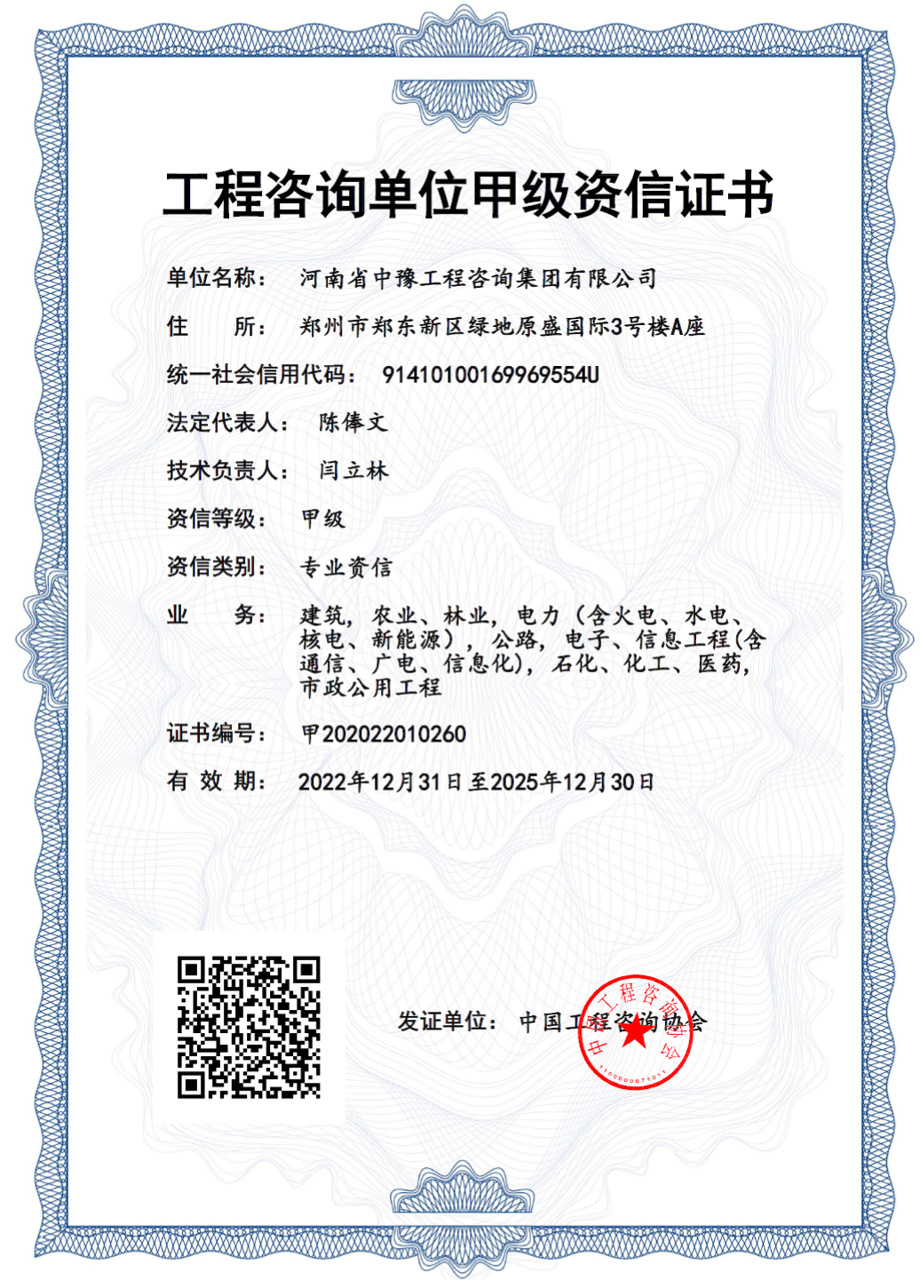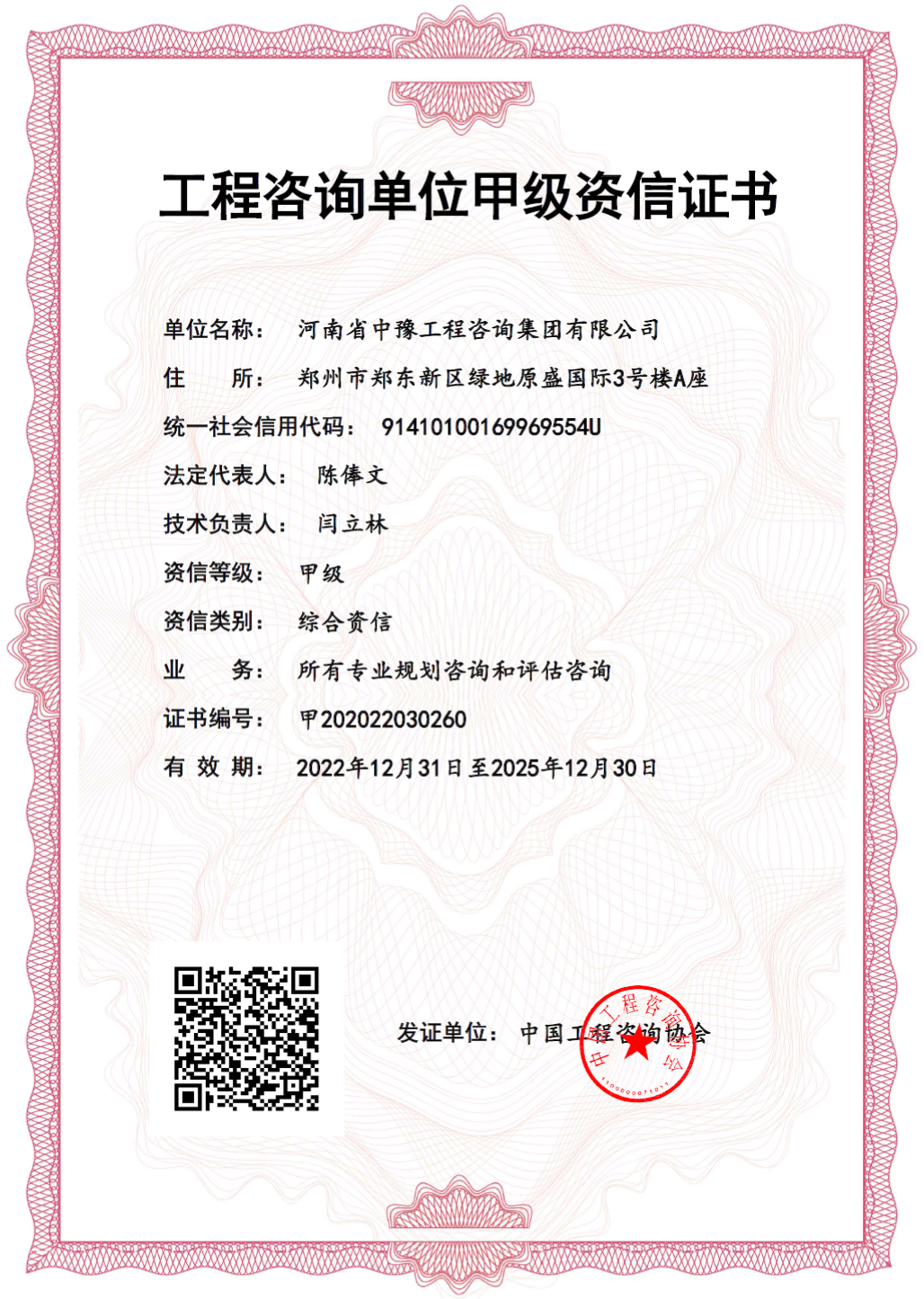 中豫咨詢集團喜獲綜合資信甲級證書