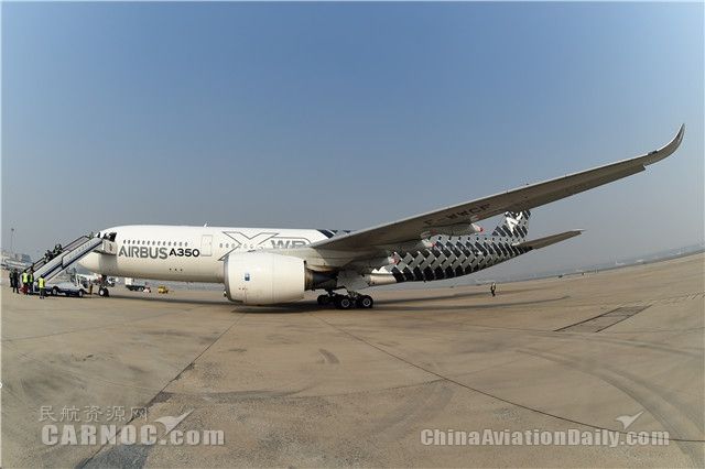 11月2日一架身披碳纖維特殊涂裝的空客A350-900測(cè)試飛機(jī)飛抵北京首都國(guó)際機(jī)場(chǎng),并在11月3日進(jìn)行展示。A350是目前世界上最先進(jìn)的遠(yuǎn)程寬體飛機(jī)。北京是空客A350中國(guó)巡演活動(dòng)的第三站,之前這架生產(chǎn)序列號(hào)為MSN2的測(cè)試飛機(jī)已經(jīng)訪問(wèn)了珠海和海口,接下來(lái)它還將飛抵上海、廣州和成都進(jìn)行靜態(tài)和飛行展示。